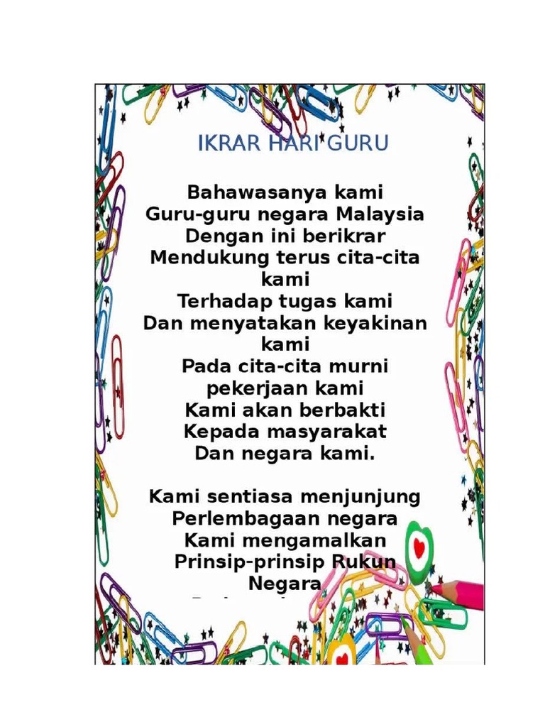 PEMEGANG rekod 100 meter m kebangsaan Muhammad Azeem Fahmi teruja selepas memimpin bacaan ikrar Rukun Negara pada majlis sambutan Hari Kebangsaan Ke-65 di Dataran Merdeka Kuala Lumpur semalam. Ini berakar sebagai agama terorganisir di Timur Tengah selama Zaman Perunggu. Ketua Umum Persatuan Guru Republik Indonesia PGRI Unifah Rosyidi meminta pemerintah memprioritaskan guru honorer senior atau yang lebih lama mengabdi.